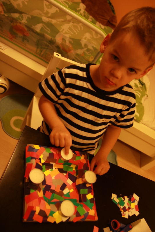 Z lepilom za les prilepimo še 4 čajne svečke.