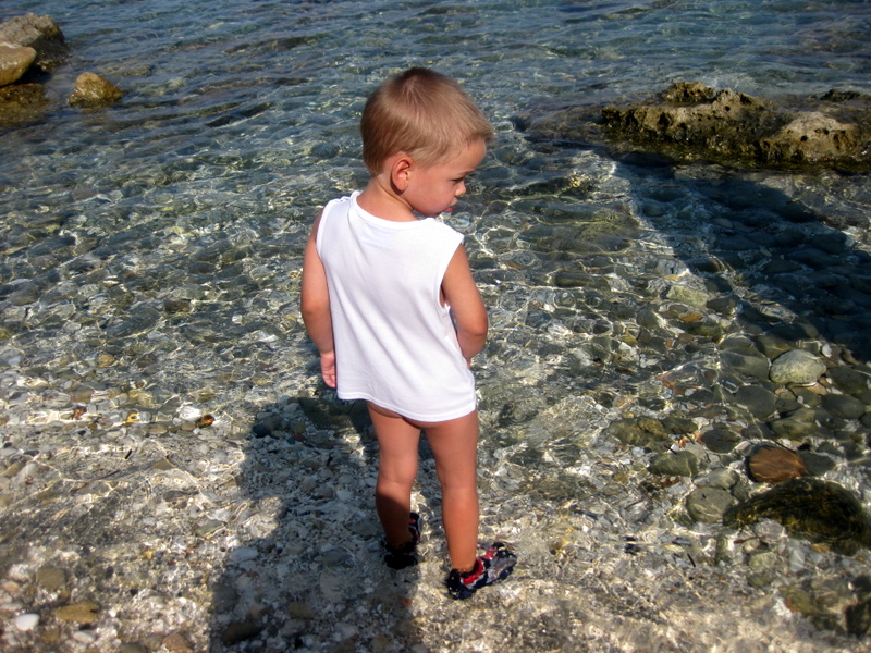 Potem pa smo šli naokoli z avtomobilom. Ker so njihovi zemljevidi čudni čudni čudni smo se vrteli v krogu (kamorkoli bi šel je pisalo Zakintos. Zakintos mesto levo, Zakintos mesto desno... ni in šlo brez centra :D ), a smo na koncu vseeno rite namakali v super lepi in fenomenalno (kot vsepovsod v Grčiji) topli vodi. Kok je pa to toplo. Da sma lahko bila v vodi tut par ur, pa se mami ni sekirala da bi se prehladila. Res noro. Raj za otroke!